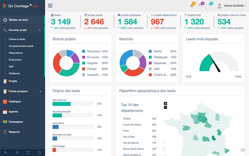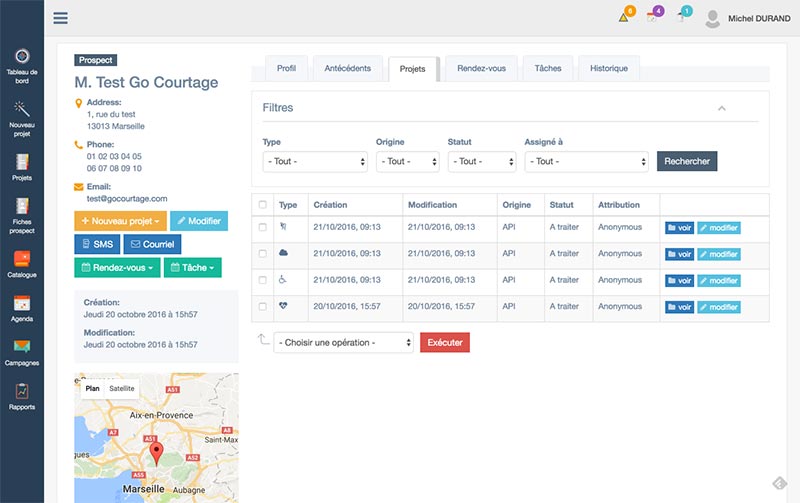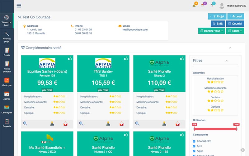 Un logiciel de courtage d'assurances simple et puissant : comparatif de garanties, envoi de devis, signature électronique, clic to call, relances...Ne passez auprès d'aucune opportunité d'affaires !